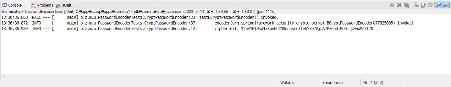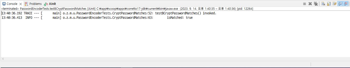 log.trace("testBCryptPasswordEncoder() invoked.");