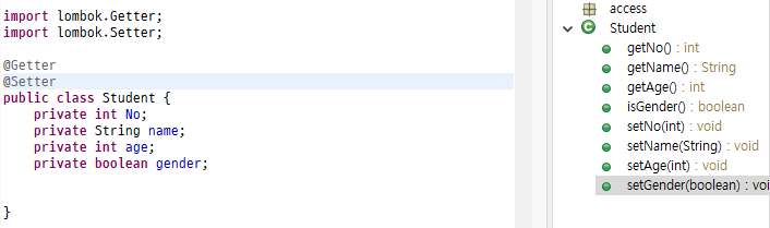 만약 롬복(lombok)이 설치되어 있다면 롬복으로 기본생성자를 만들 수 있습니다.