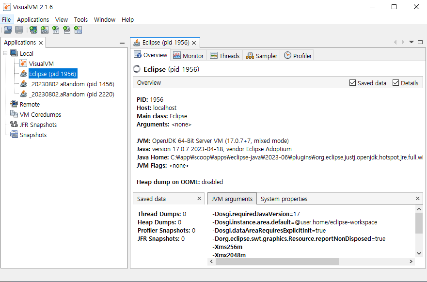 이제 powershell에 다음 명령어를 입력하면 VisualVM이 구동됩니다.